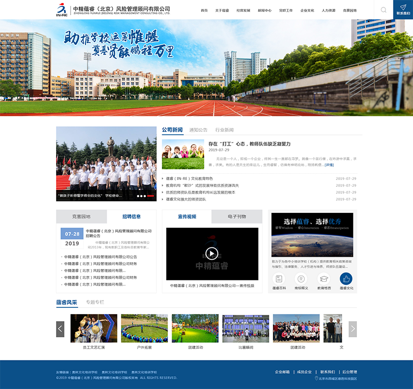 Project Description 中精蕴睿(北京)风险管理顾问有限公司2013年,现有教职工及各科目教育专家80多人,致力于为各中小培训学校(机构) 提供教育相关政策咨询与指引、法律服务、人才引进与培养、师资队伍建设与培训、教学教研与学科创新、市场营销企划、文化 理念塑造与品牌输出的专业化教育管理全方位的综合服务。 Official website address 兰州http://in-re.com/ I want to share